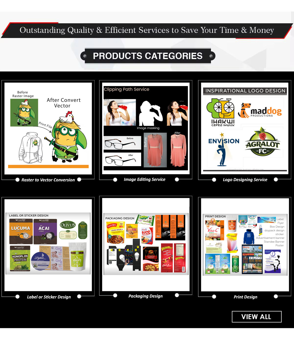 Principaux produits : Services graphiques vectoriels, Images ou services de traitement de photos, Conception d'emballage, Impression numérique, Impression d'étiquettes ou d'autocollants